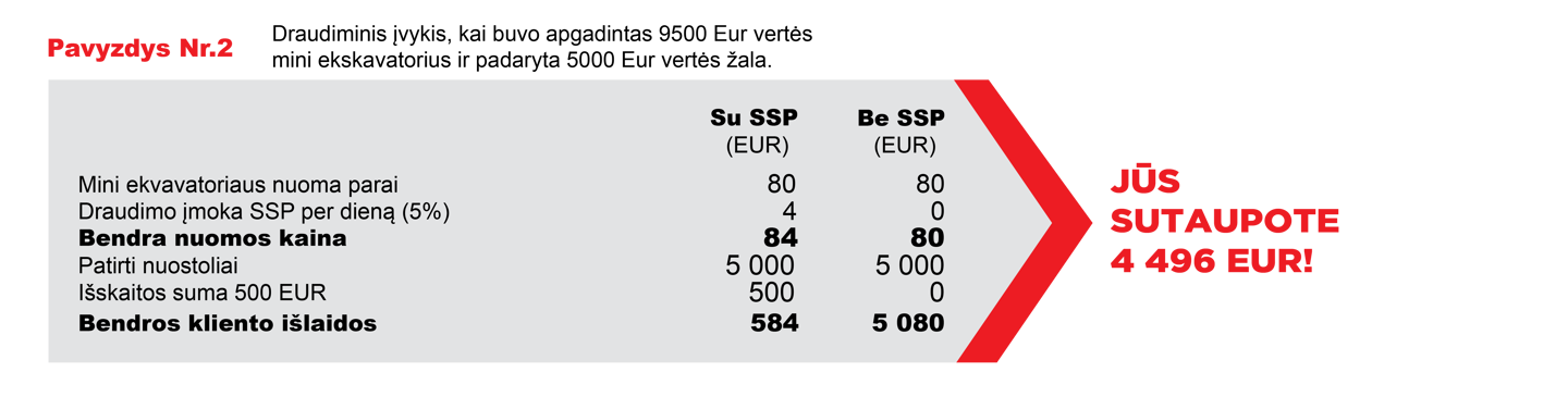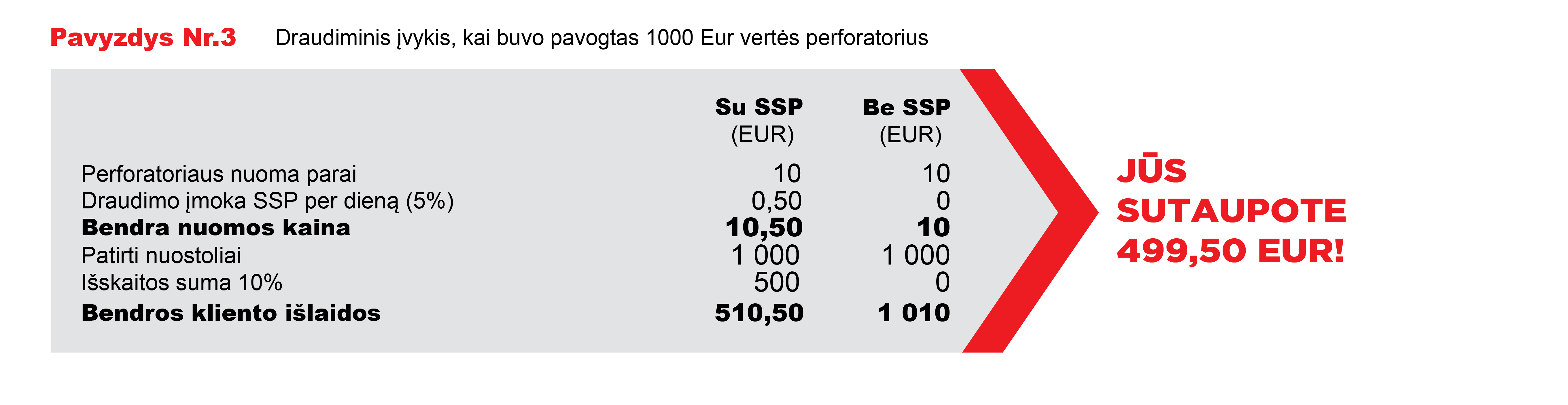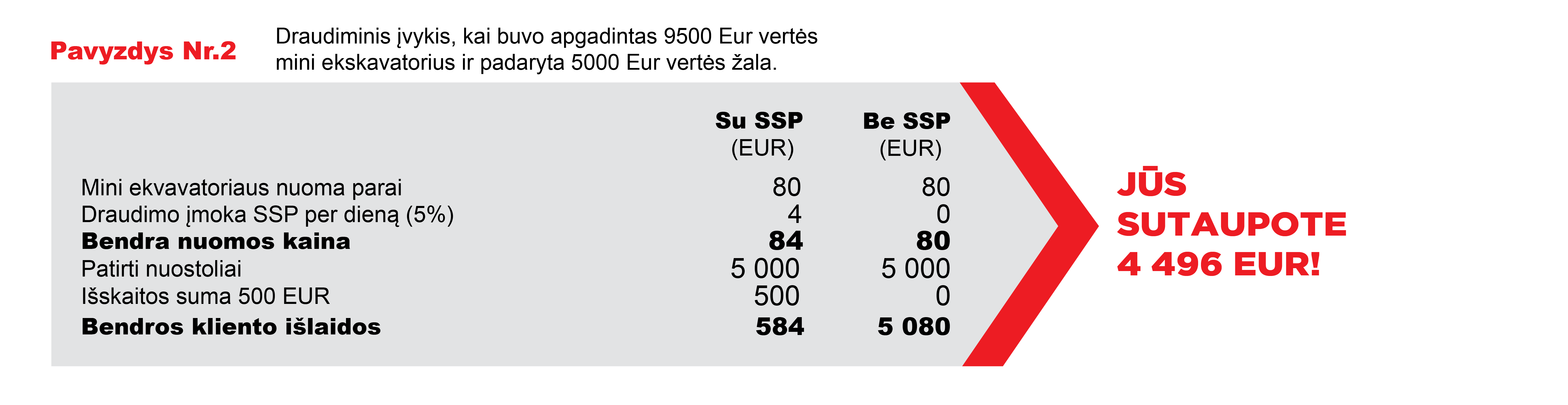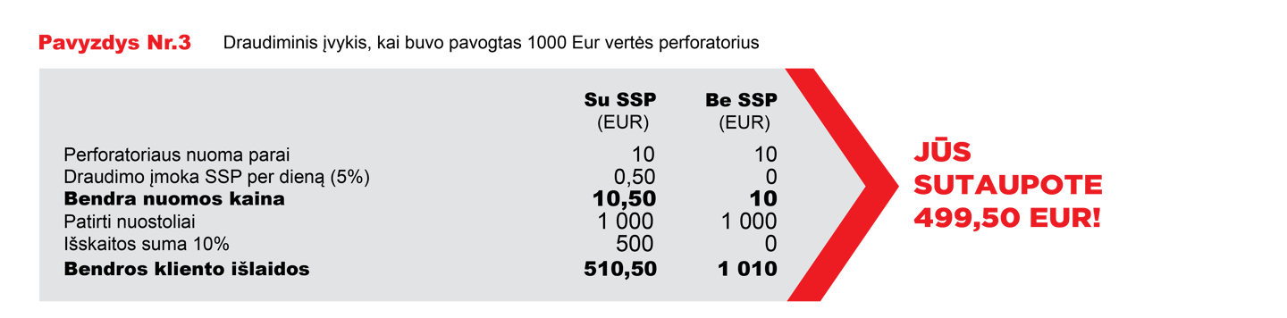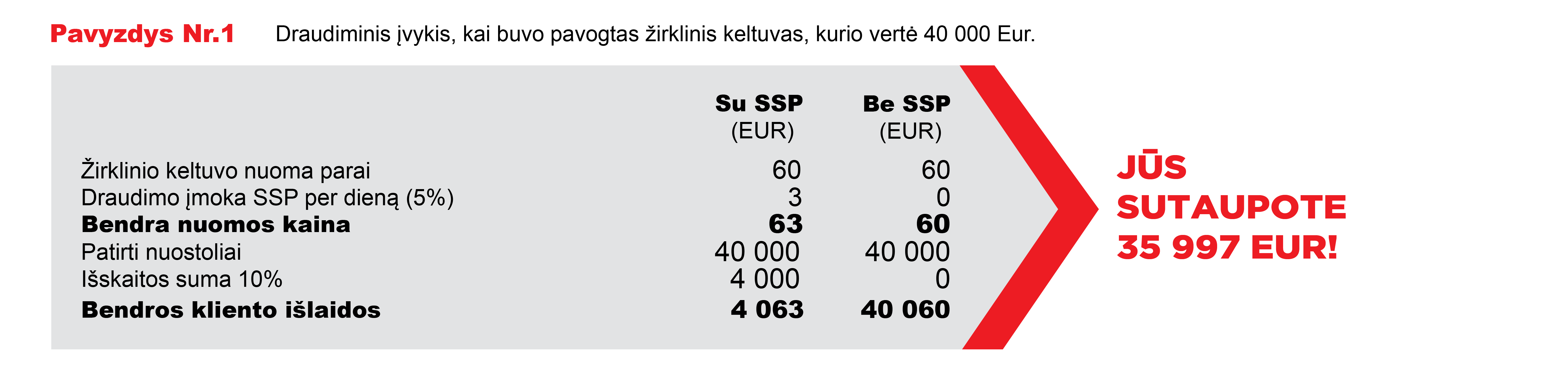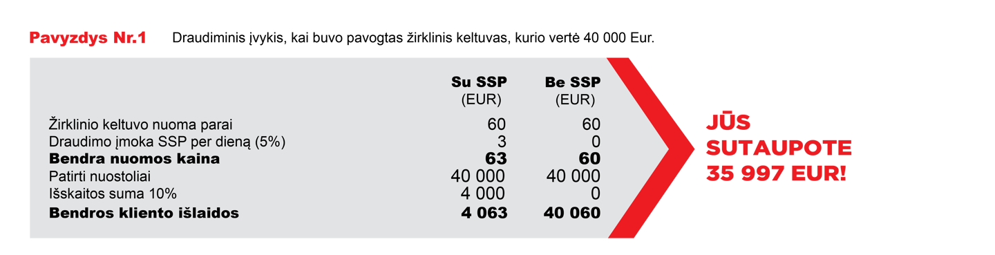Atsitikus draudiminiam įvykiui ir naudojantis SSP, nuomotojui mokate tik išskaitos sumą, kuri yra 10% nuostolio, bet ne mažiau kaip: